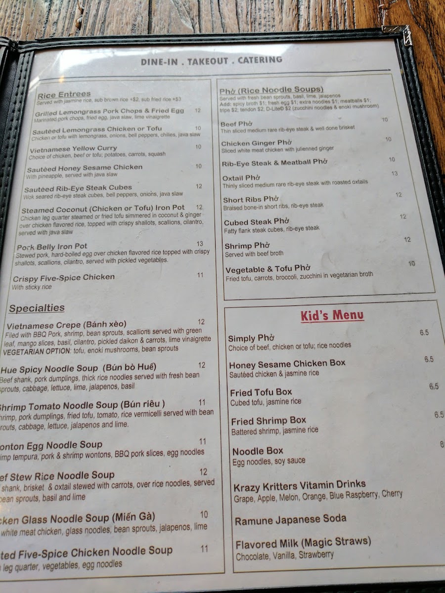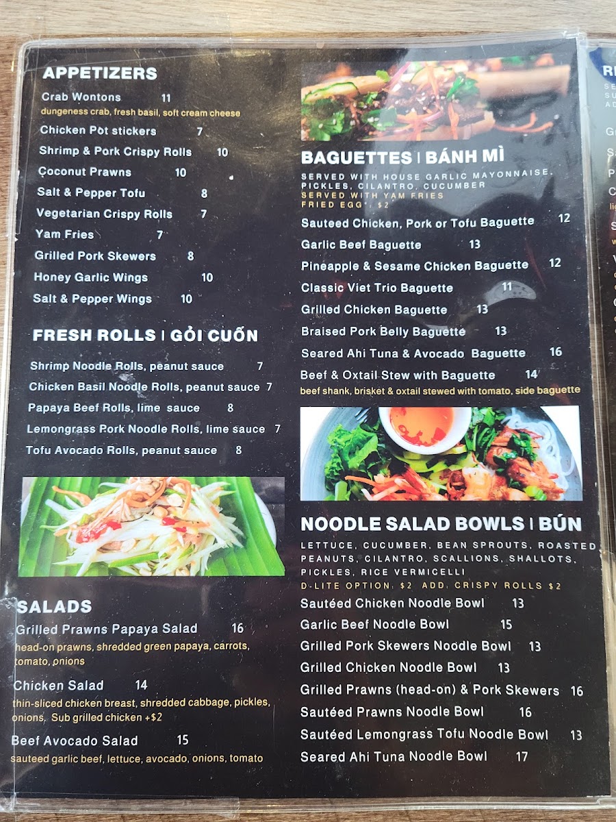 This menu invites visitors to enjoy familiar Vietnamese staples alongside creative, fresh dishes, all served in a welcoming setting that encourages taking a moment to savor simple, satisfying meals and drinks throughout the day.