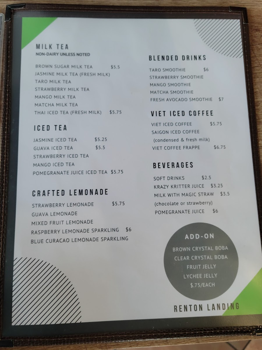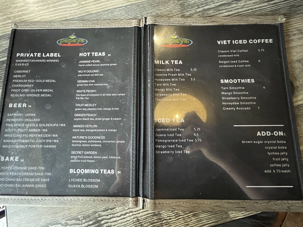 At Papaya Renton Landing, the menu combines the comfort of classic Vietnamese flavors with casual, approachable dishes and refreshing drinks. Whether you’re stopping by for a quick lunch, grabbing a light dinner, or enjoying a laid-back afternoon break, the selection offers something for every occasion.